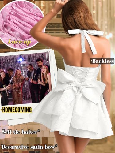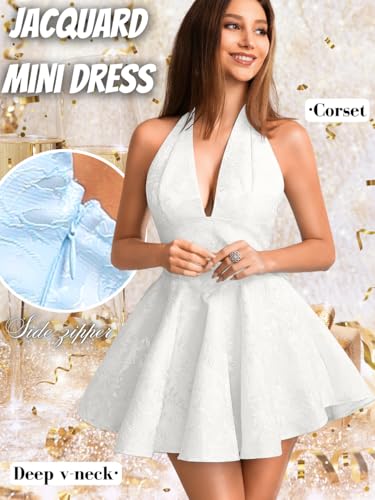 Jacquard Corset Dress,Deep V Halter Mini Dresses with Bow Back,Sexy Birthday Outfits Women Homecoming Prom Formal