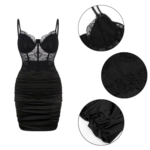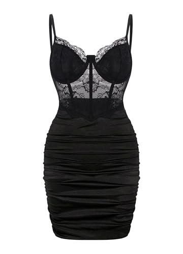 jascaela Womens Mesh Corset Dress Sexy Sleeveless Satin Slit Dresses Party Cocktail Ruched Bodycon Dress