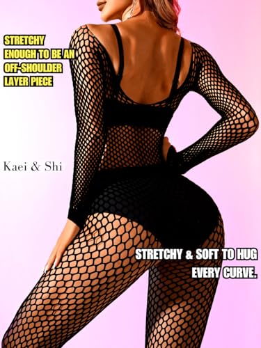 Kaei&Shi Fishnet Bodysuit, Rave Outfits, Backless Bodystocking Fits 0-18