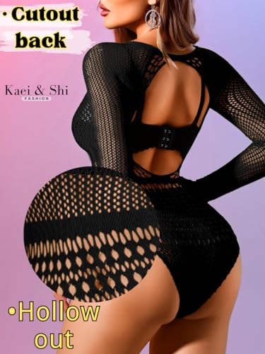 Kaei&Shi Sexy Hollow Rave Outfits, Fishnet Bodysuit Fits 0-18, Sheer Lace Glow Party Tops, Festival Mesh Plus Size For Women