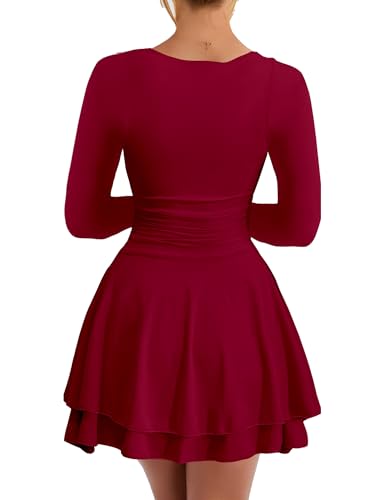 Kaximil Women’s Square Neck Ruffle Hem Mini Dress Ruched Waist Long Sleeve Corset Short Party Dresses