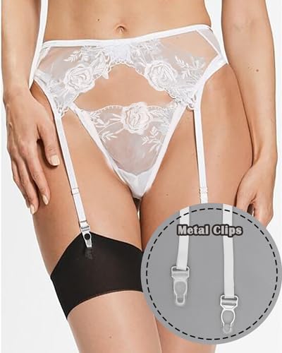 💕Easy to put on and take off. Pull on garter belt with four adjustable straps, metal clips and elastic waist.