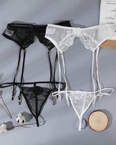 The package contains 1PC Lace Garter and 1PC Thong (stockings not included).