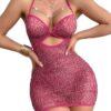 Lilosy Sexy Chain Ruched Bodycon Mesh Sheer Halter Outfits Mini Babydoll Lingerie Dress Set with Thong 2 Piece