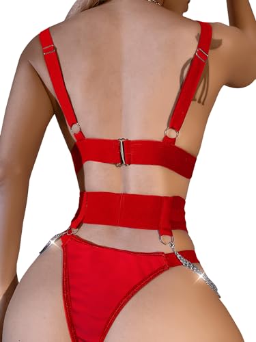 Lilosy Sexy Chain Strappy Garter Belt Women Lingerie Set Rave Outfits