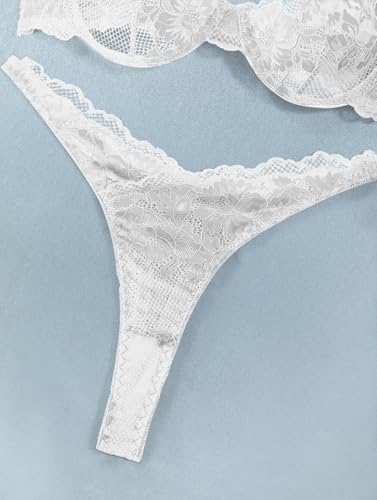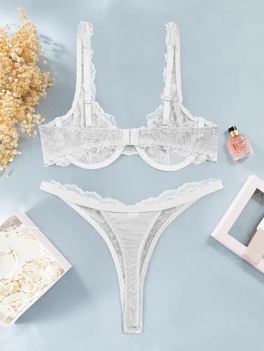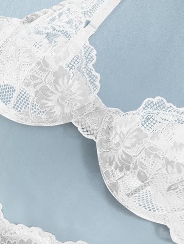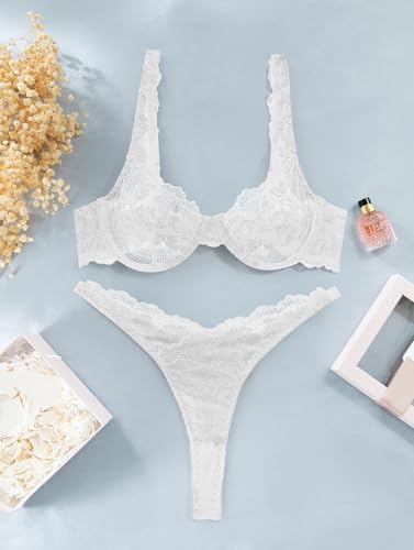 Lilosy Sexy Floral Lace Scallop Underwire Push Up Sheer Lingerie Set Outfits