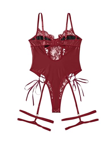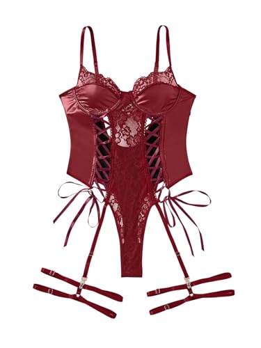 Lilosy Sexy Lace Up Floral Garter Underwire Teddy Bodysuit Lingerie Belt Women Top One Piece