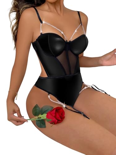 Lilosy Sexy Stocking Strappy Garter Underwire Mesh Babydoll Teddy Bodysuit Lingerie