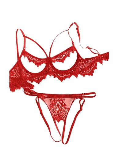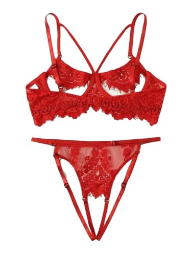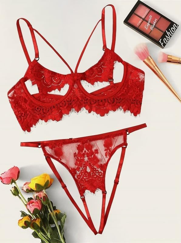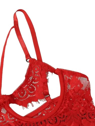 Lilosy Sexy Underwire Strappy Floral Sheer See Through Lingerie Set