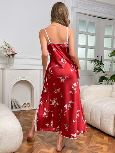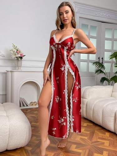 Lingerie Dress for Women V Neck Long Sexy Nightgowns for Women Side Split Sexy Night Gowns