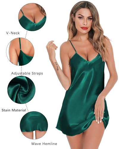 Lovasy Women’s 2 Pack Silk Nightgown Sexy Lingerie Satin Sleepwear Negligee V Neck Chemise Nightwear Mini Slip Dress S-XXL