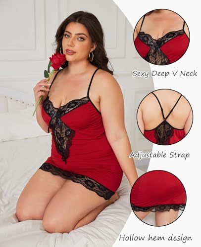 MINTLIMIT Women’s Plus Size Lace Chemise Lingerie Sexy Nightwear Spaghetti Strap Nightgown Babydoll Sleepwear