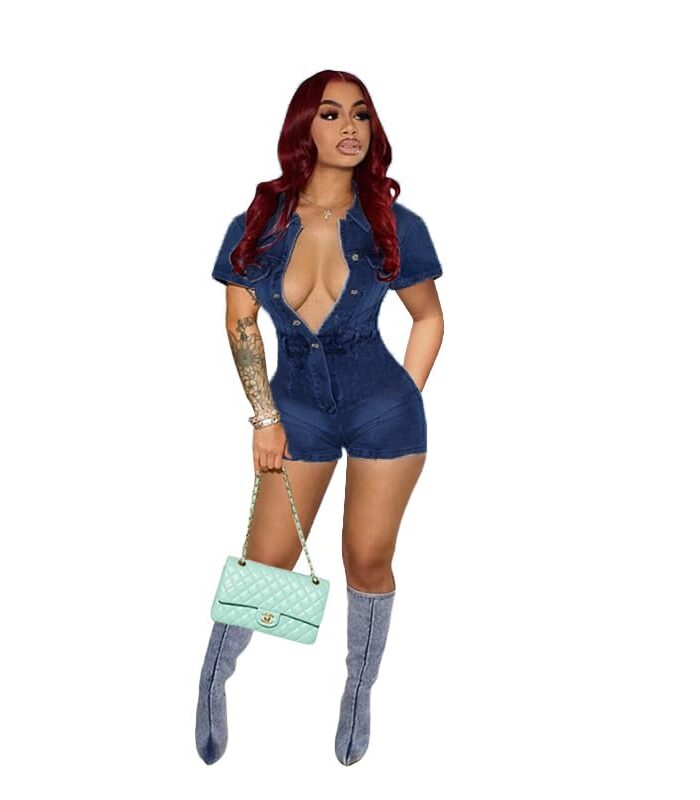 Be the first to review “Molilove Women’s Vintage Short Denim Jumpsuit Short Sleeve Button Down Jean Jumpsuit Rompers with Pockets” Cancel reply
