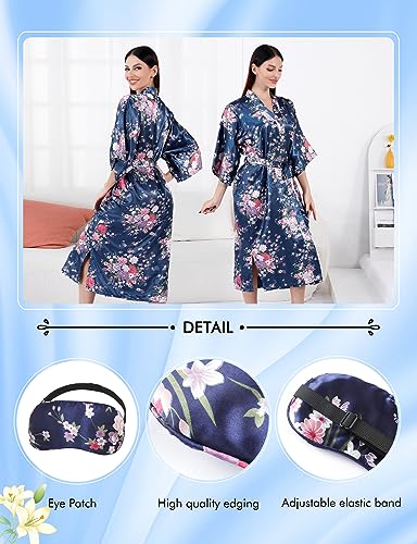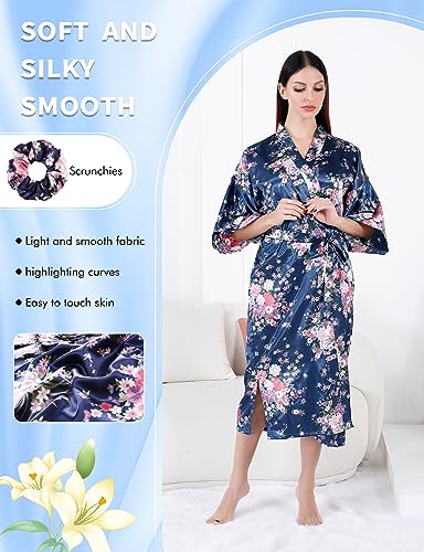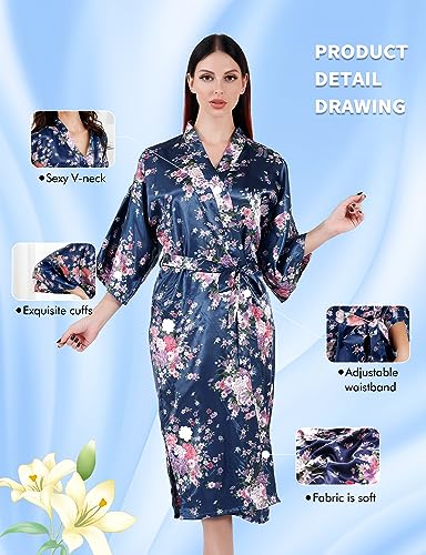 MORFORU Women Silky Long Bath Robes Bride Bridesmaid Satin Floral Kimono Bridal Party Peony-printed Sleepwear Lounge Wear