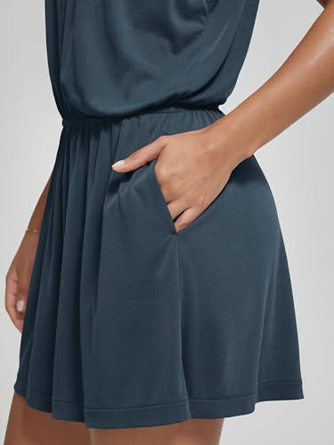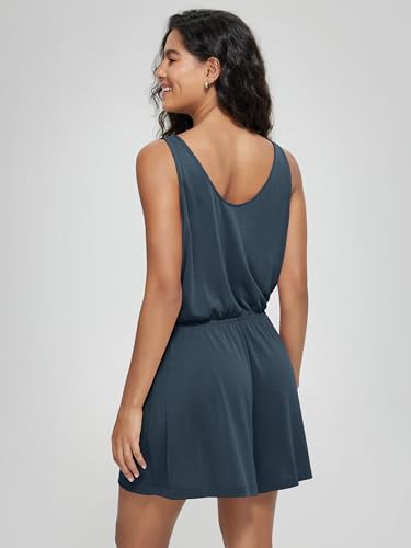 ODODOS Women’s Modal Soft Romper with Pockets Elastic Waist Sleeveless Outfit Summer Short Jumpsuits