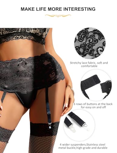 ohyeah Lace Garter Belt for Thigh Highs Plus Size Garter Belt with 4 Straps Metal Clips Garter Lingerie