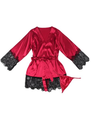 ohyeah Silk Satin Robe Lace Trimed Kimono Robes Plus Size Silky Bathrobe Sexy Lingerie for Women Short Bridal Party Robe