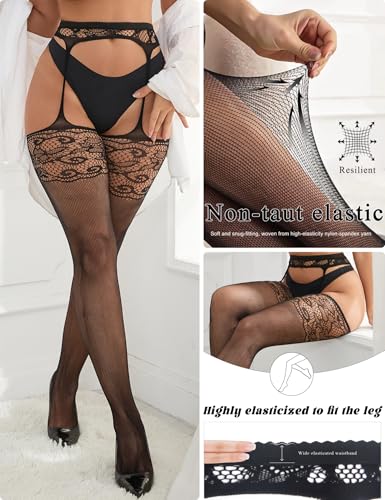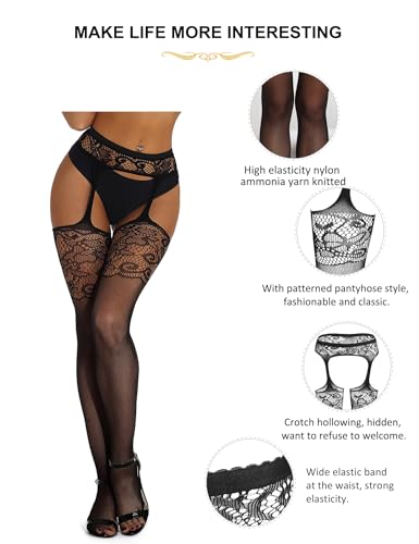 ohyeah Suspender Pantyhose for Women Pattern Lace Fishnet Tights Thigh High Stockings with Garter Black Fishnet Leggings