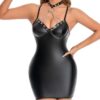 ohyeahlady PU Leather Lingerie Set for Women Sexy Clubwear Babydoll Halloween Wet Look Chemise Mini Dress Outfits S-2XL