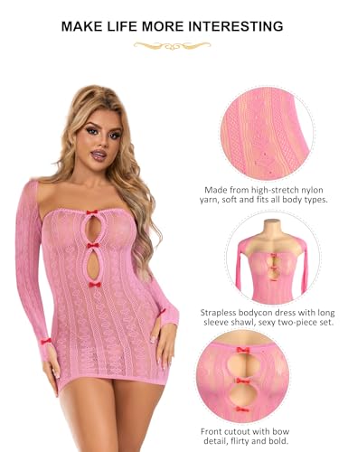 ohyeahlady Sexy Lingerie for Women Plus Size See Through Fishnets Dresses Cut Out Babydoll Long Sleeve Two Piece Nightwear