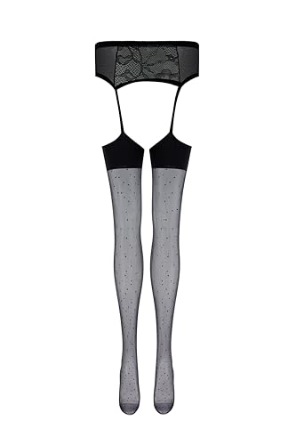 OSUGA Women’s Sexy Lace Garter Belt with Polka Dot Thigh High Stockings Sheers Suspender Pantyhose