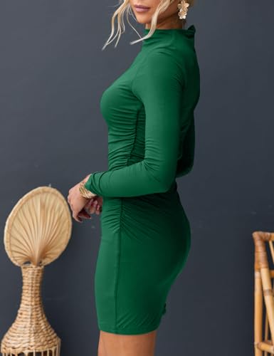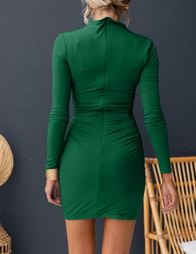 OWIN Women’s Sexy Casual Mock Neck Dresses Long Sleeve Ruched Bodycon Cocktail Party Mini Dress