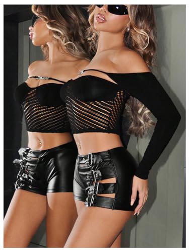 OYOANGLE Women’s Buckled Cut Out Leather Mini Shorts Y2k Low Rise Booty Hot Shorts