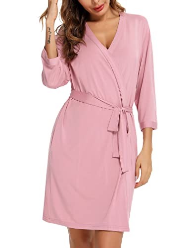 Pjmlifecoco Women Kimono Robes Short Bathrobe Lightweight Robe Soft Loungewear with Pockets S-XXL