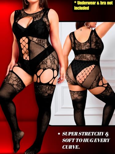 Plus Size Body Stockings For Women Curvy BBW, Exotic Dancer Lingerie Outfits, Full Sexy Fishnet Bodysuit Rave Party