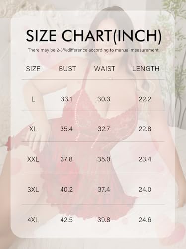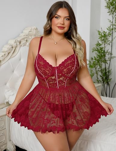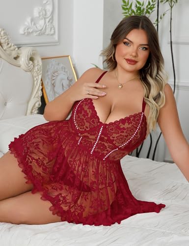 Plus Size Lingerie for Women Open Back Sexy Lingerie Dress Floral Lace Babydoll Chemise Lace Nightgown