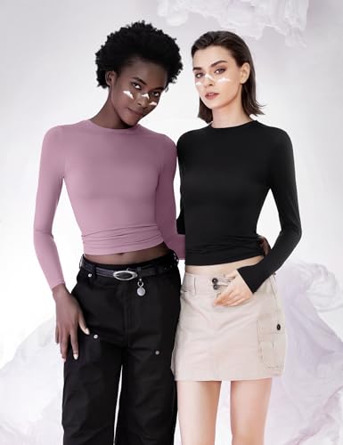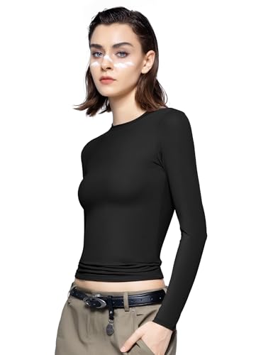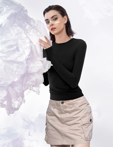 PUMIEY Women’s Long Sleeve T Shirts Crew Neck Slim Fit Tops Sexy Basic Tee Smoke Cloud Pro Collection