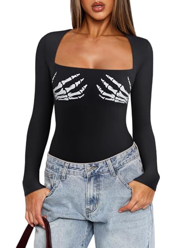 REORIA Women’s Basic Lightweight Layering Sexy Slim Square Neck Long Sleeve Bodysuit Tops