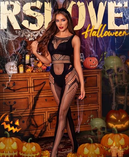 RSLOVE Sexy Lingerie Exotic Bodystocking – Fishnet Cut Out Lingerie Mesh Bodysuit One Piece Babydoll Rave Outfits