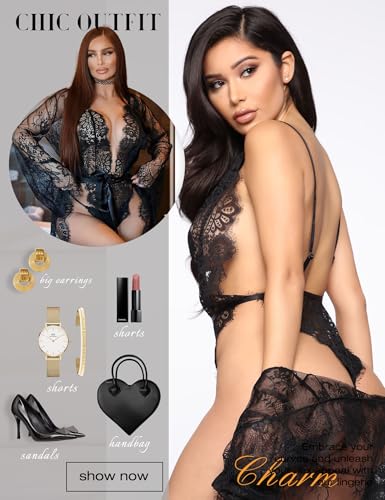 Avidlove Lingerie for Women Sexy Lace Bodysuit Deep V Teddy Lingerie One Piece Mini Babydoll