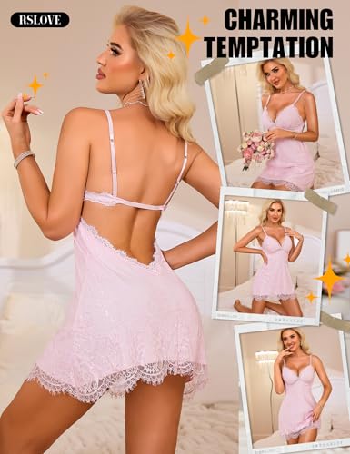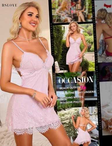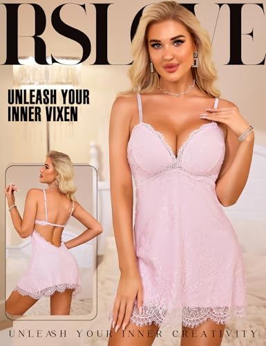 RSLOVE Womens Lingerie Lace Nightgown – Sexy Nightwear Spaghetti Strap Sleepwear Babydoll Chemise V Neck Soft Sleepshirt