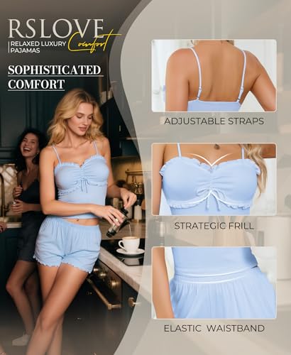 RSLOVE Womens Summer Pajamas Sets – Soft Pj Sets 2 Piece Cami Shorts Set Lingerie Sleepwear Casual Loungewear