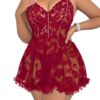 Sexy High Split Side Floral Lace Babydoll Lingerie Dress Set 2 Piece with Thong