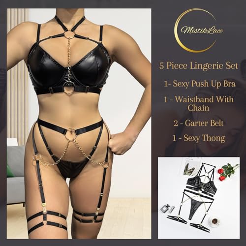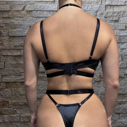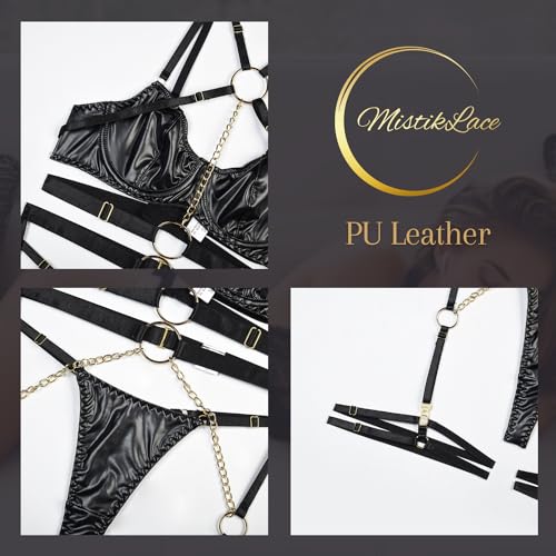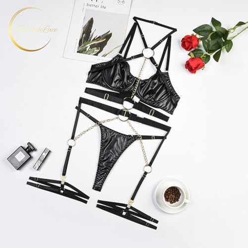 Sexy Lingerie for Women 2024 – Womens Lingeries – Lingerie Set – Women’s Exotic Lingerie Sets – Leather Lingerie (Black, XL)