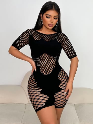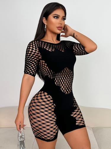 Sexy Mesh Jumpsuit Shorts For Women High Stretch One Piece Bodysuit Club Party Rave Romper