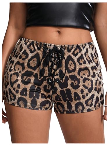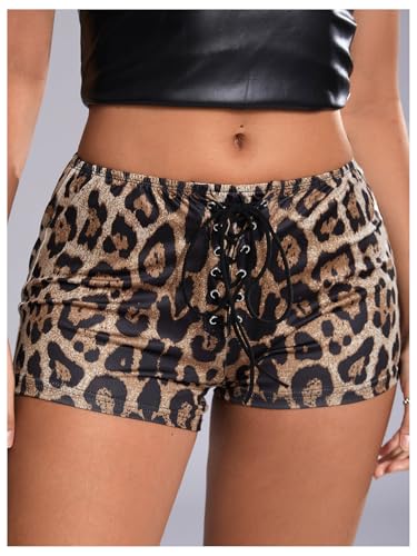 SHENHE Women’s Animal Leopard Low Rise Y2k Shorts Lace Up Rave Party Club Shorts