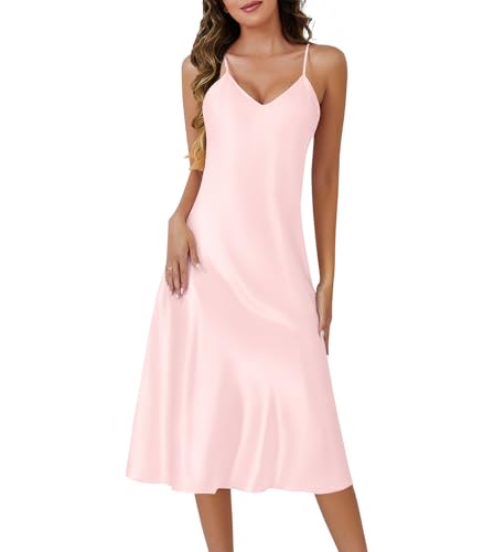Silk Nightgown for Women Long Satin Sleep Slip Dress Silky Night Dress V Neck Chemise Nightie Soft Nightwear