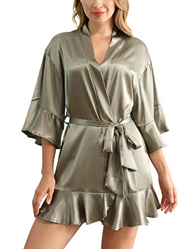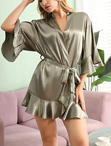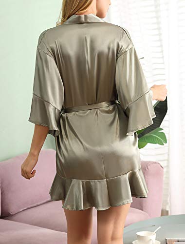 Silk Satin Robe for Women, Soft and Elegant Short Kimono with Ruffle Hem, Luxurious Sleepwear and Loungewear