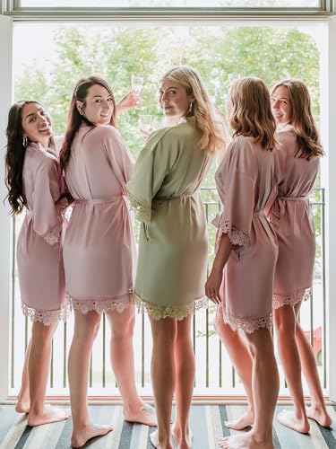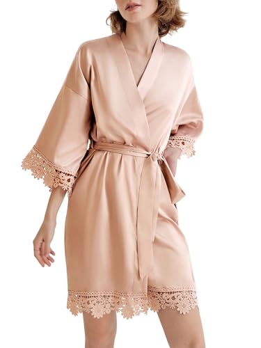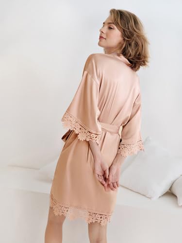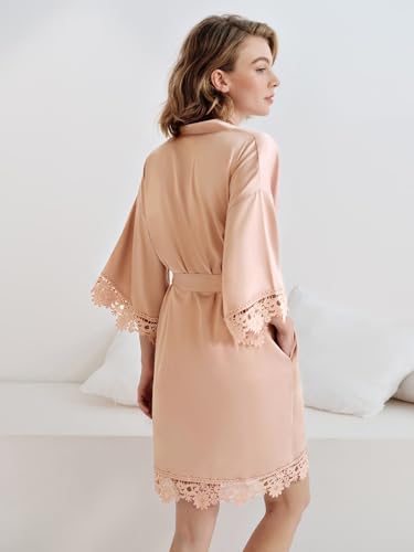 SIORO Women’s Satin Robe Lace Silk Kimono Robes Short for Bridesmaid Wedding Party Nightgown Print 2 Medium