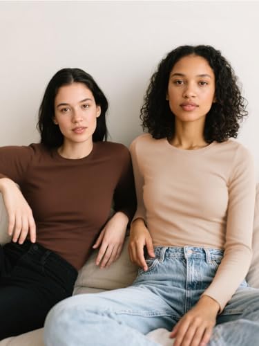 SIS QUEEN Women’s Long Sleeve Bodysuit Crew Neck Double Lined Sexy Thong Basic Body Suits for Women