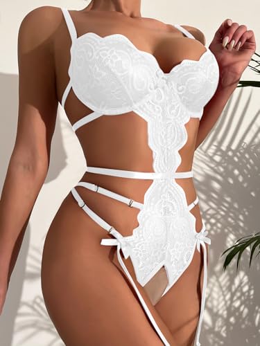 SOLY HUX Lingerie for Women Lace Cutout Scalloped Trim Bodysuit Teddy Lingerie Babydoll