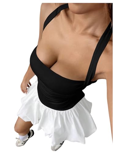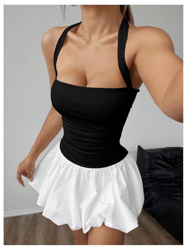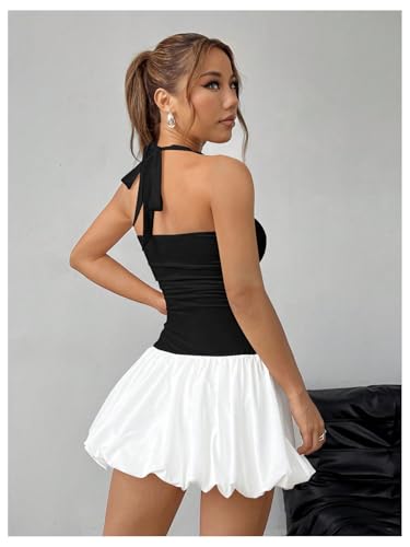 SOLY HUX Women’s Bubble Mini Dress Y2K Halter Backless Club Party Graduation Short Dresses with Shorts Underneath