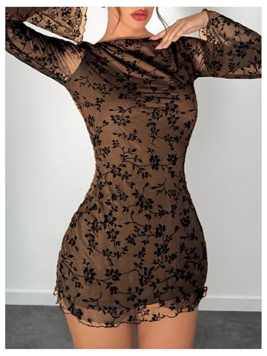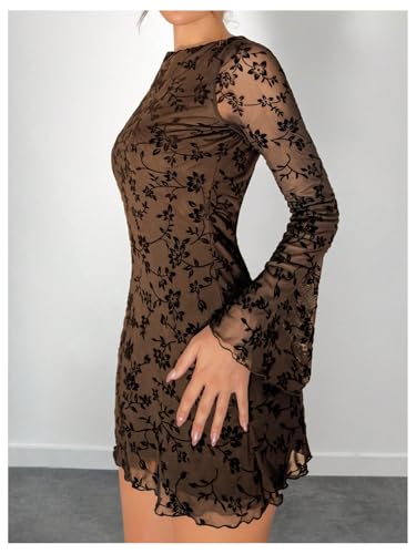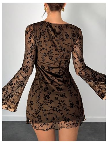 SOLY HUX Women’s Floral Sexy Mesh Mini Dress Bell Long Sleeve Bodycon Going Out Dresses