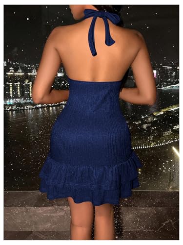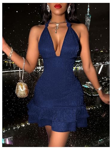 SOLY HUX Women’s Summer Halter Bodycon Mini Dress Sexy Deep V Ruffle Party Cocktail Cami Dresses