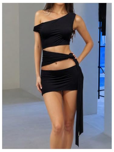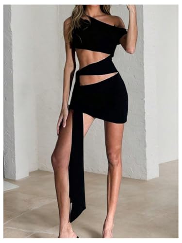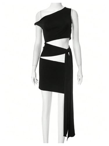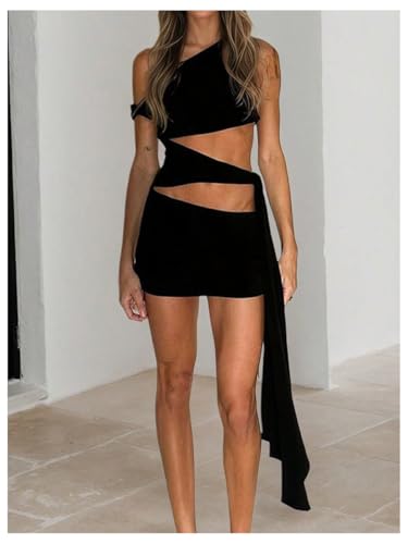 SweatyRocks Women’s Cut Out Off The Shoulder Mini Dress Tie Knot Sexy Bodycon Club Party Dresses