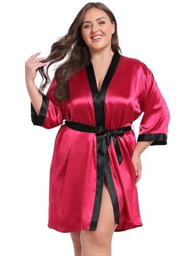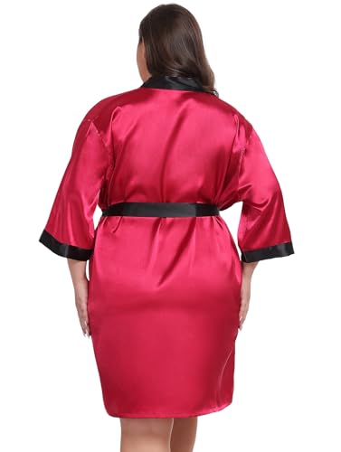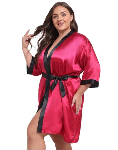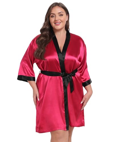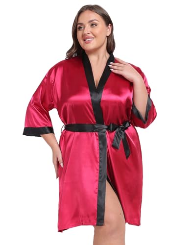 Taylor Eddie Womens Plus Size Silky Satin Kimono Robe Floral Short Bride Bridesmaid Bathrobe Soft Sleepwear